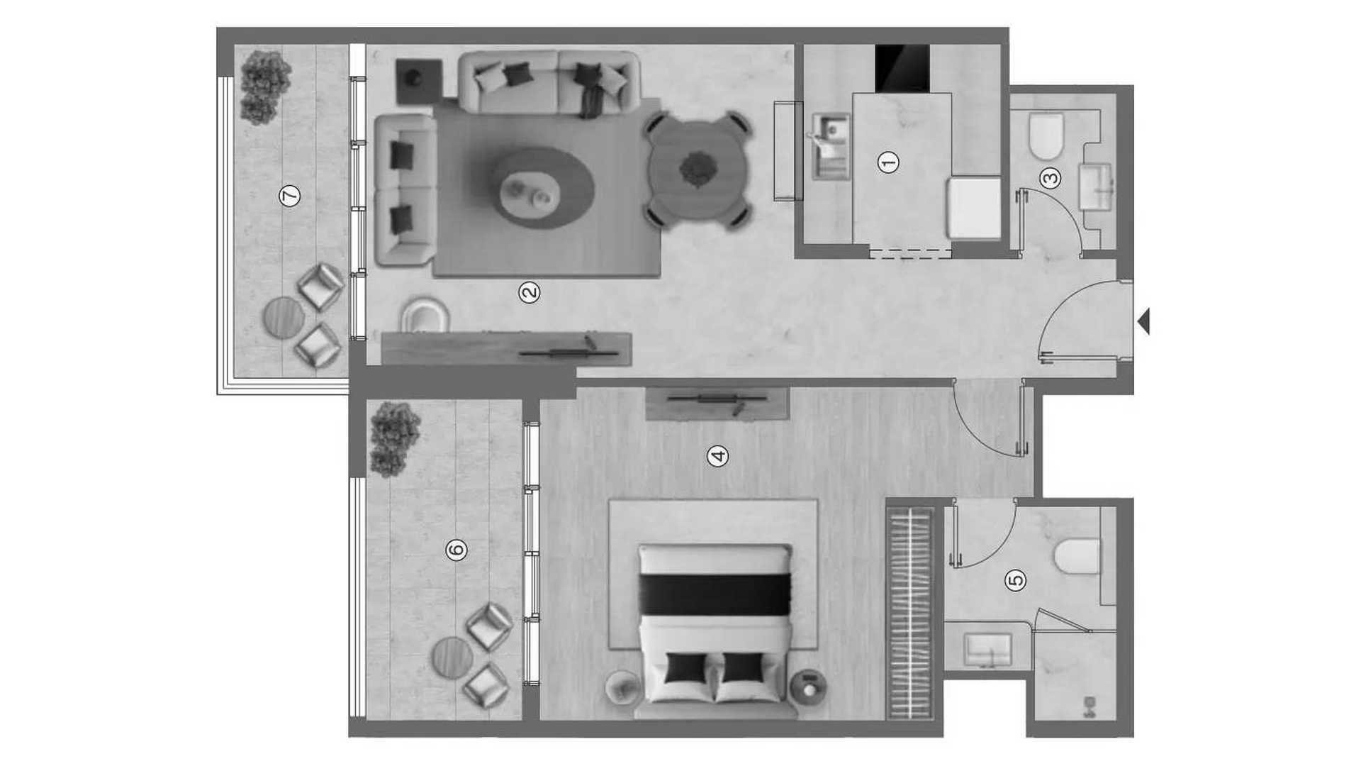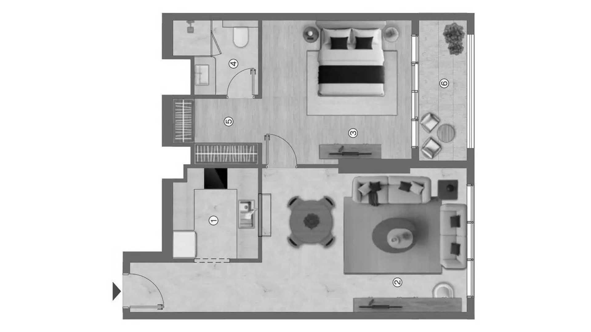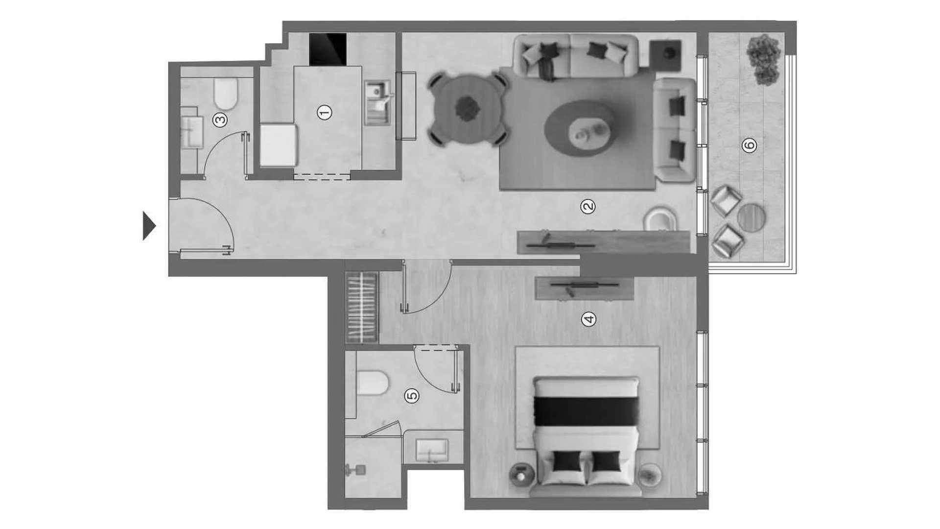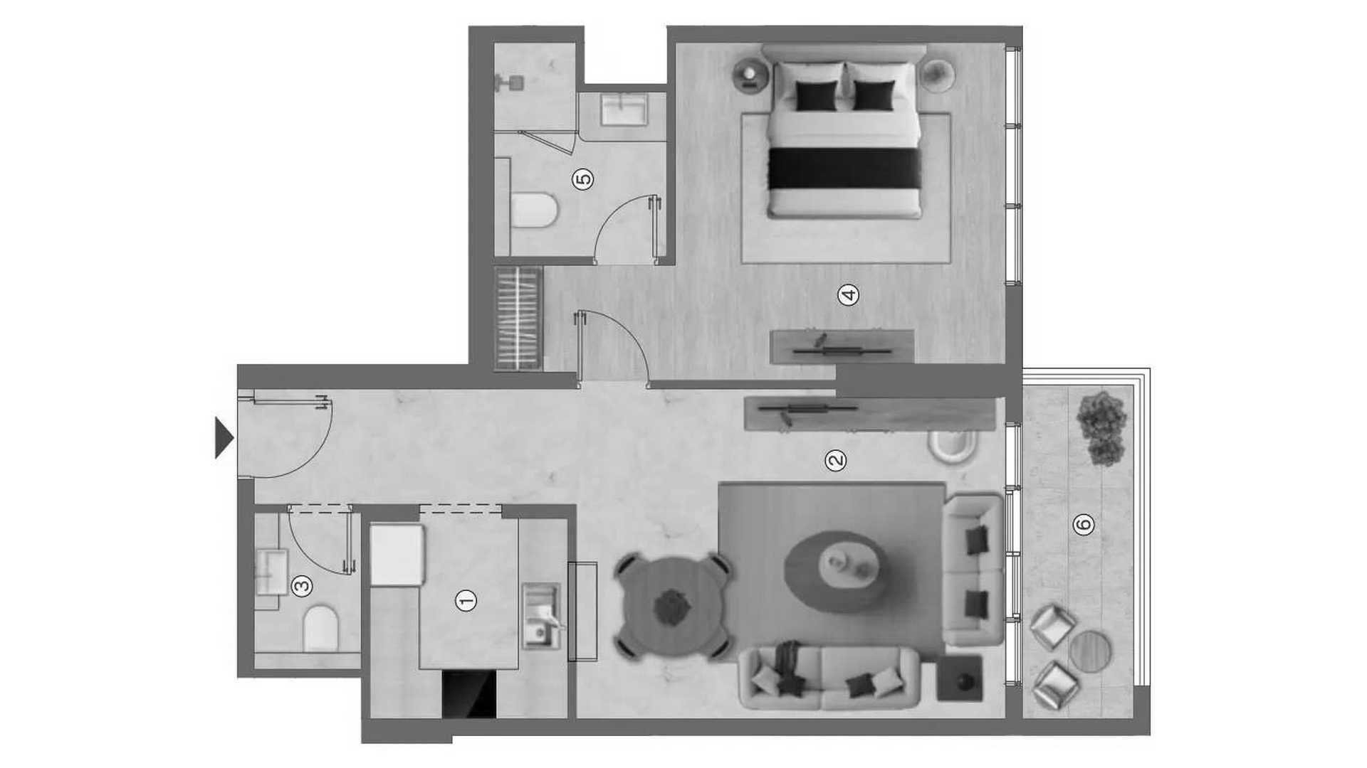 1غرف نوم شقة مخطط الطابق «1BR» في Ramada Residences by Wyndham