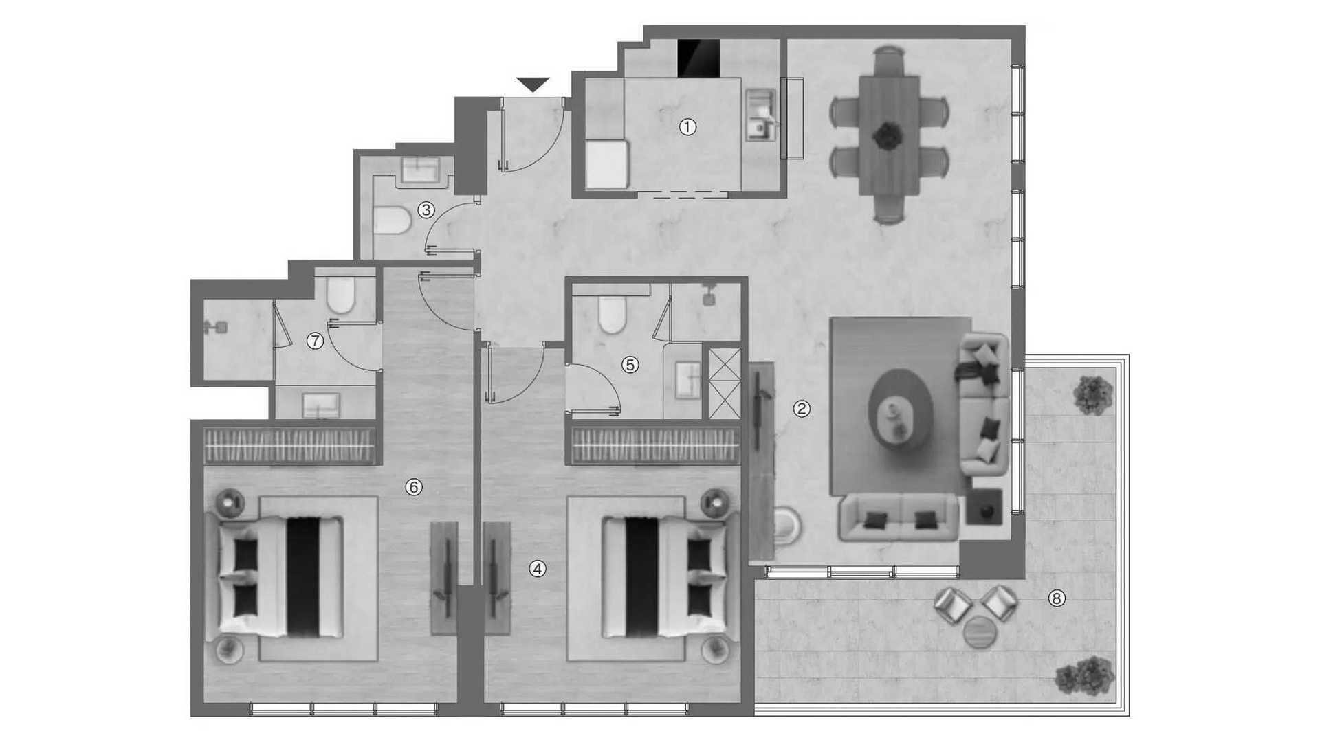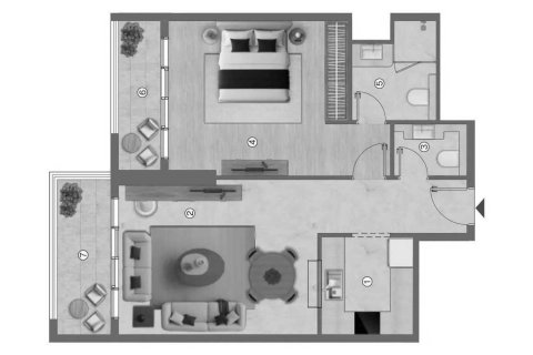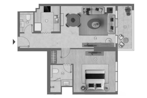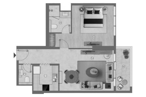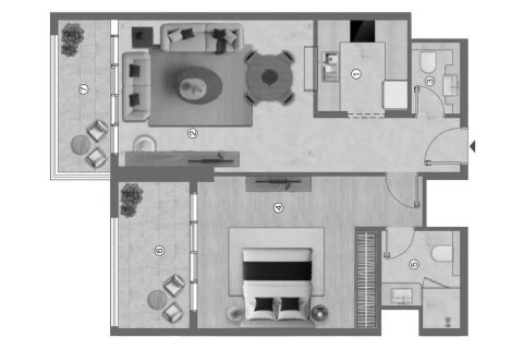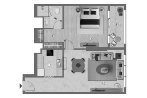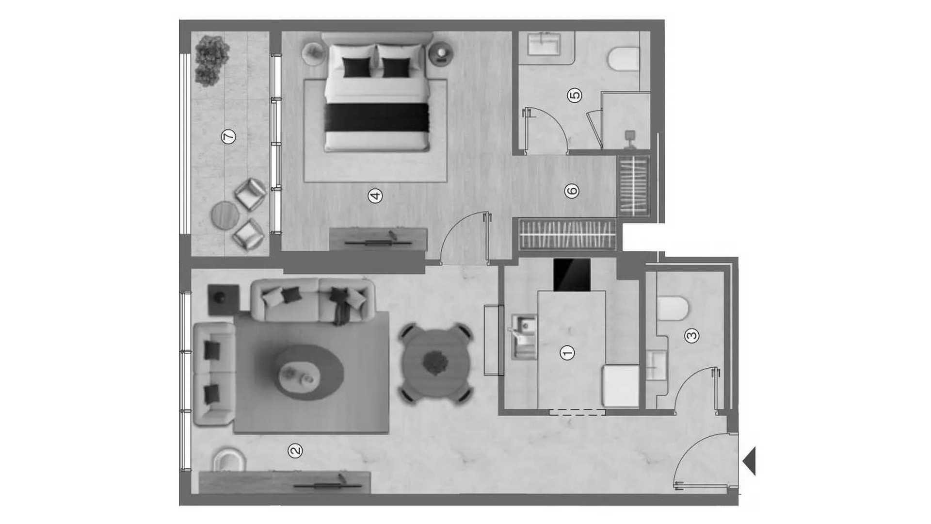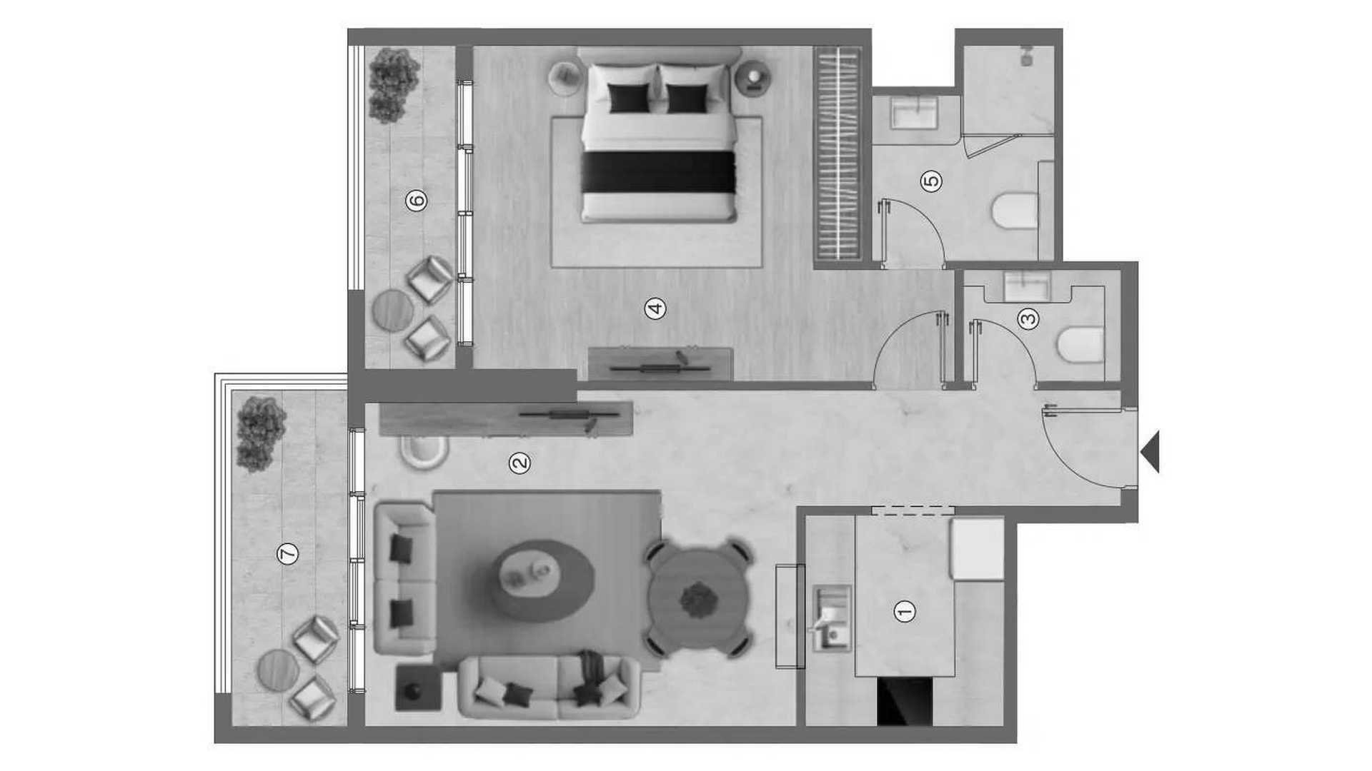 1غرف نوم شقة مخطط الطابق «1BR» في Ramada Residences by Wyndham