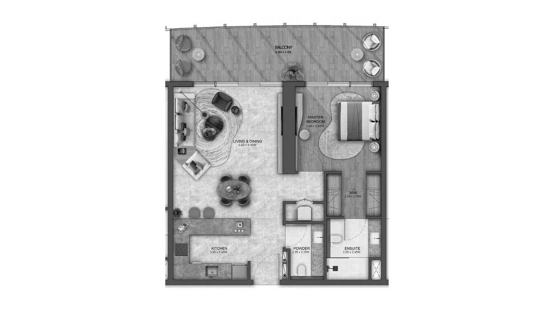 Plano de Apartamento de 1 dormitorio en Kanyon Beyond 85194