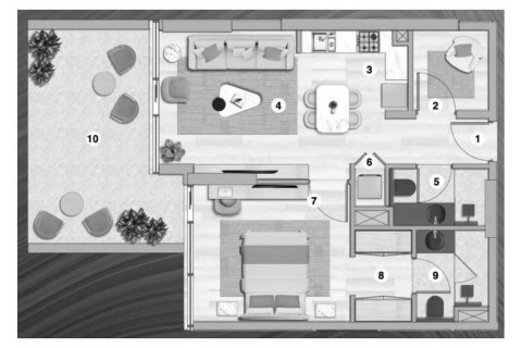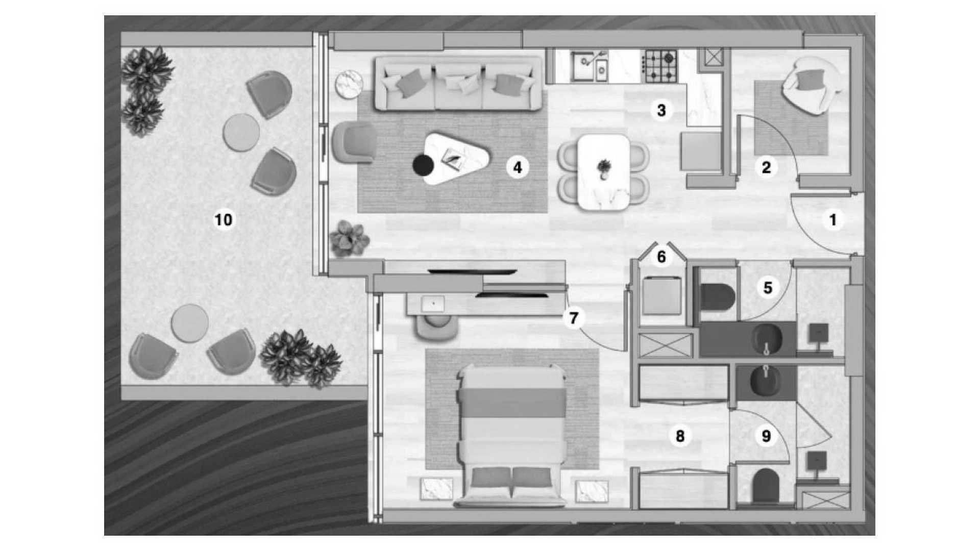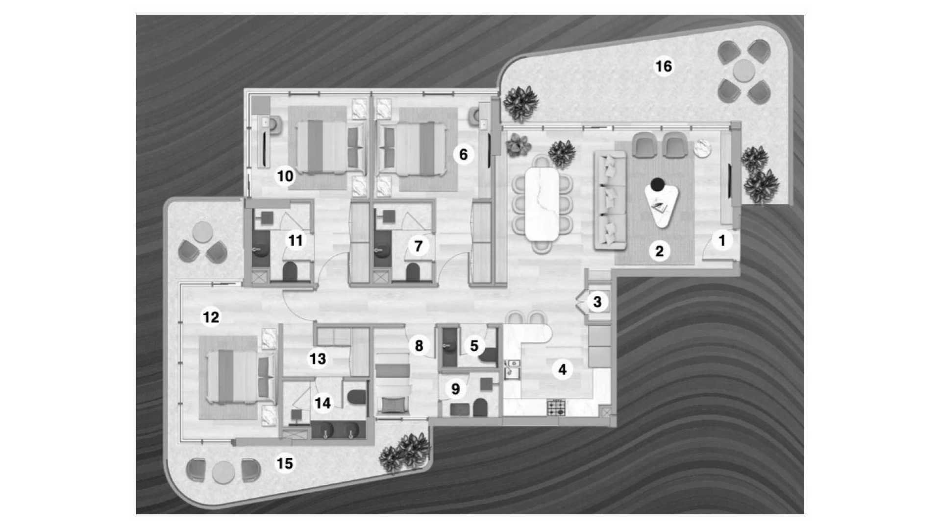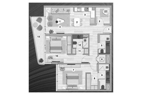 Plano de Apartamento de 1 dormitorio en Flora Bay 97916