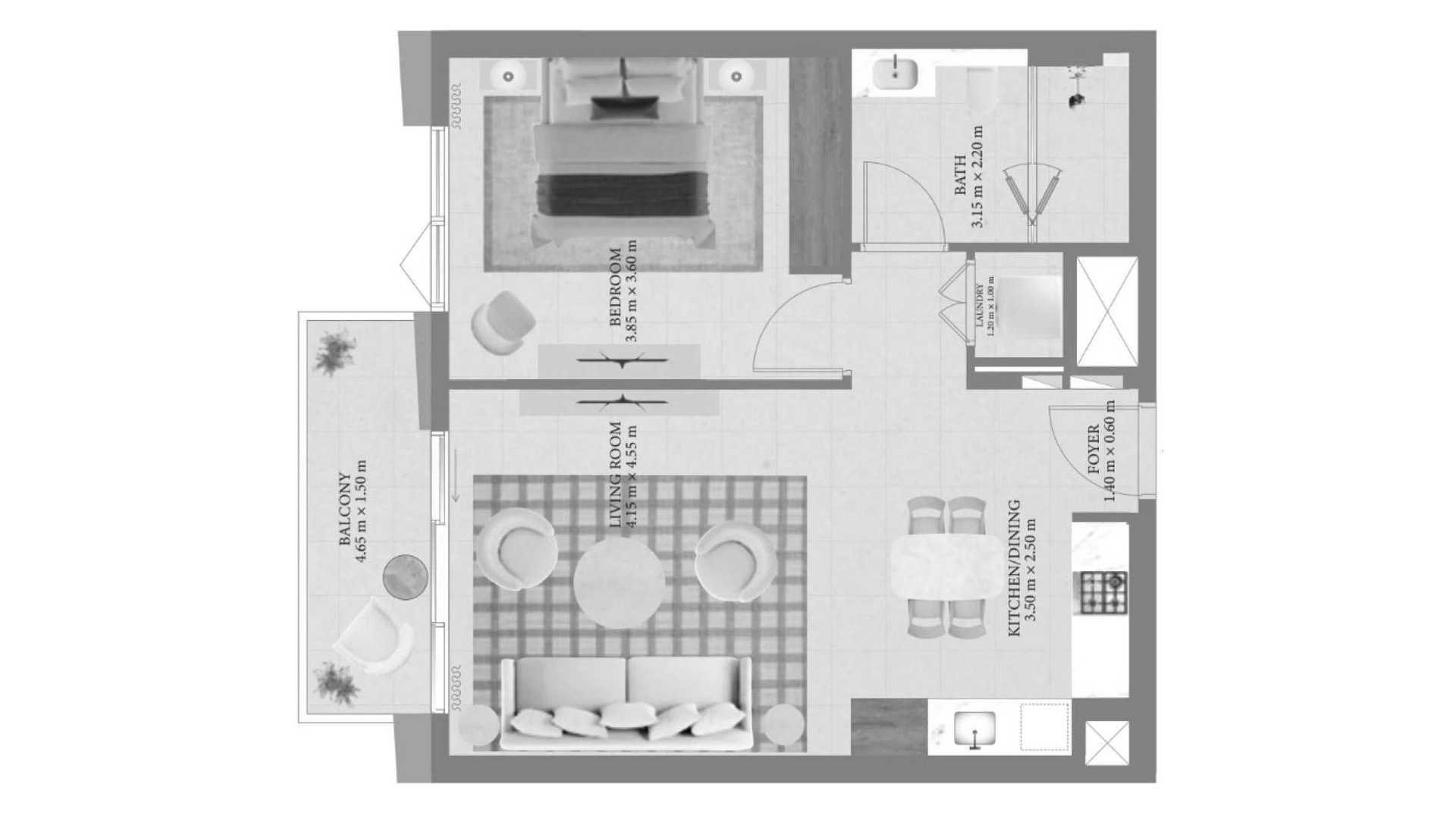 Plano de Apartamento de 1 dormitorio en Fior 1 97919