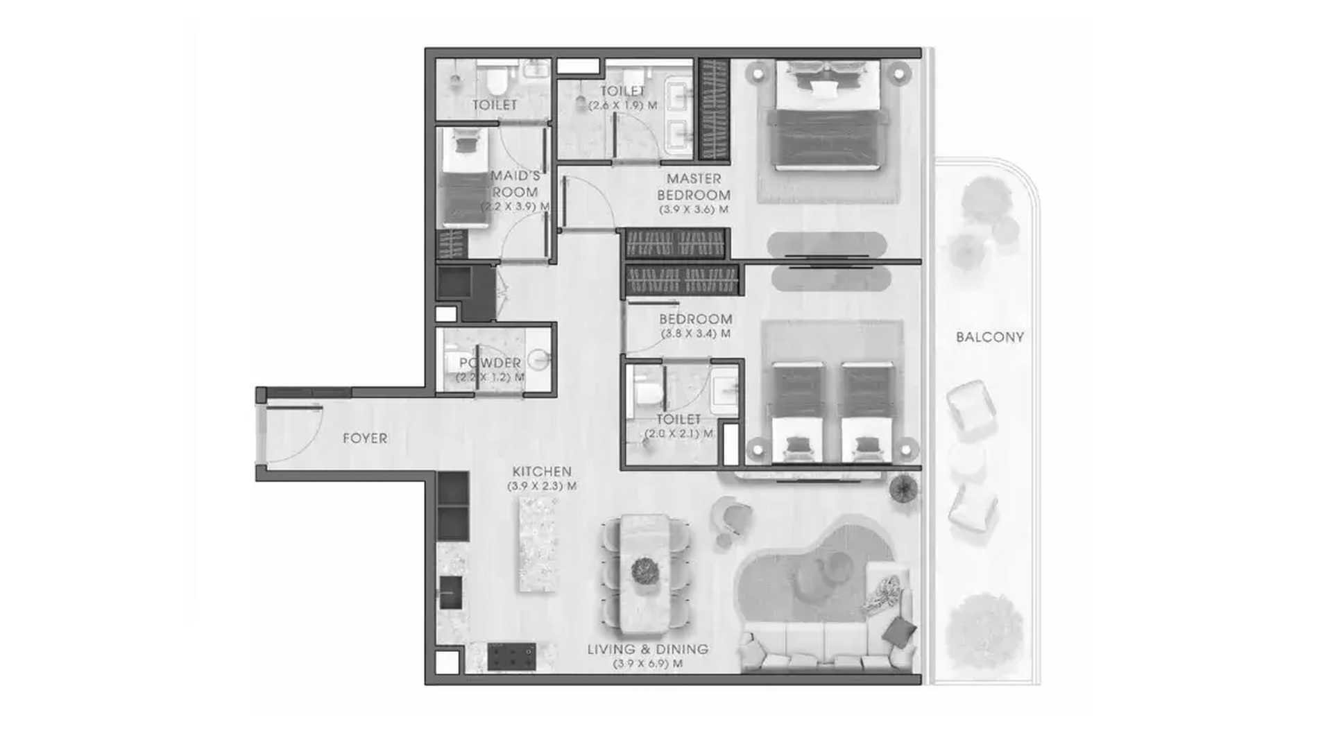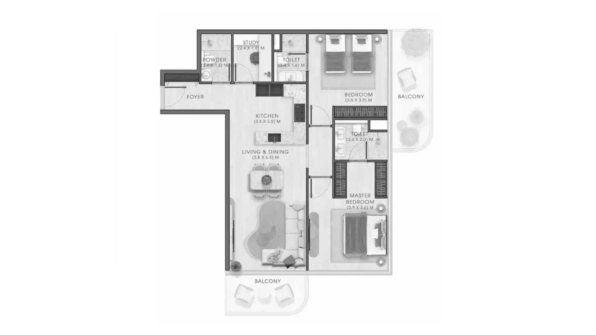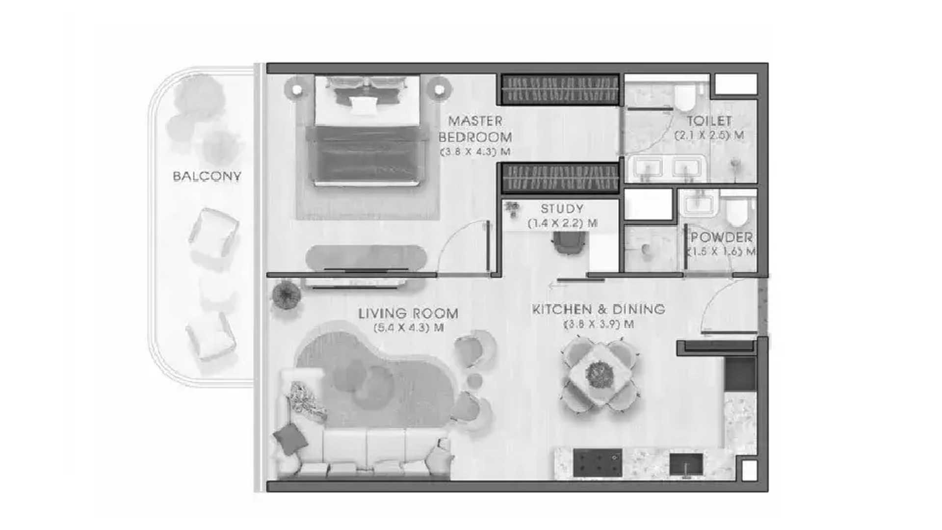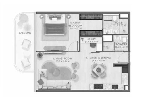 1 bedroom Apartment floor plan in Kaia Residences No. 100535