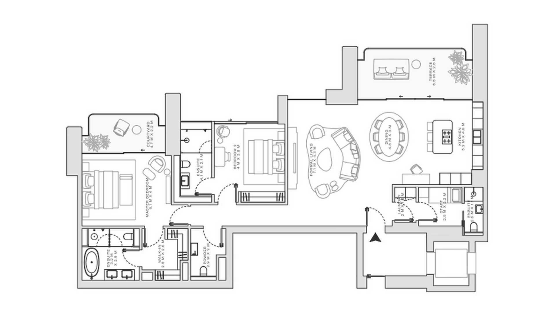 2 bedrooms Apartment floor plan in Solaya No. 58504