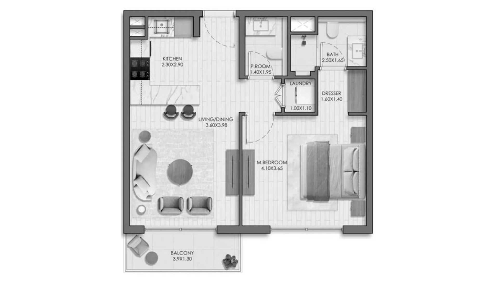 1 bedroom Apartment floor plan in Belmont No. 94420