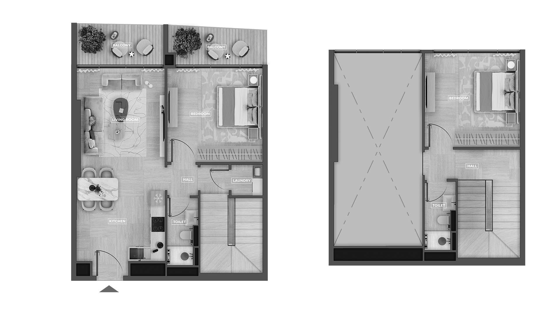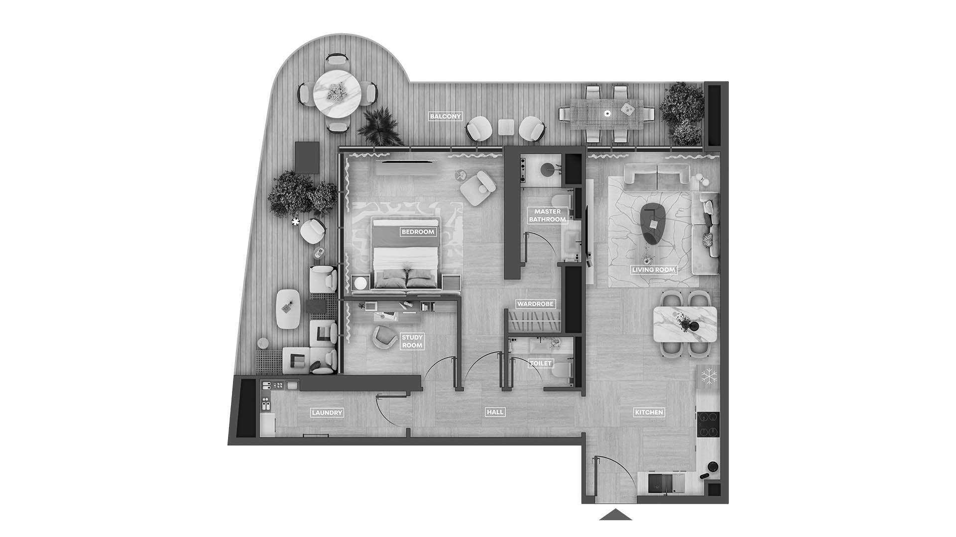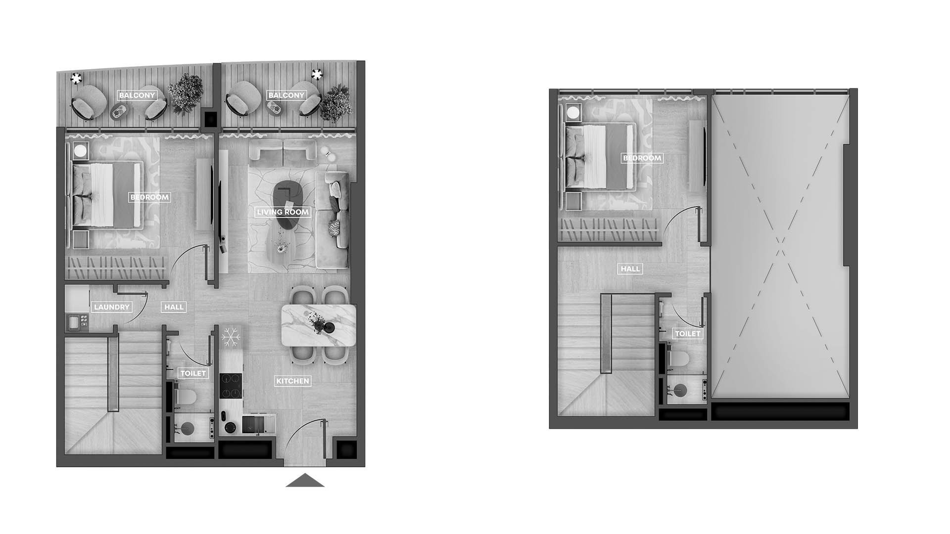 Планировка квартиры c 2 спальнями в ЖК SkyHills Astra